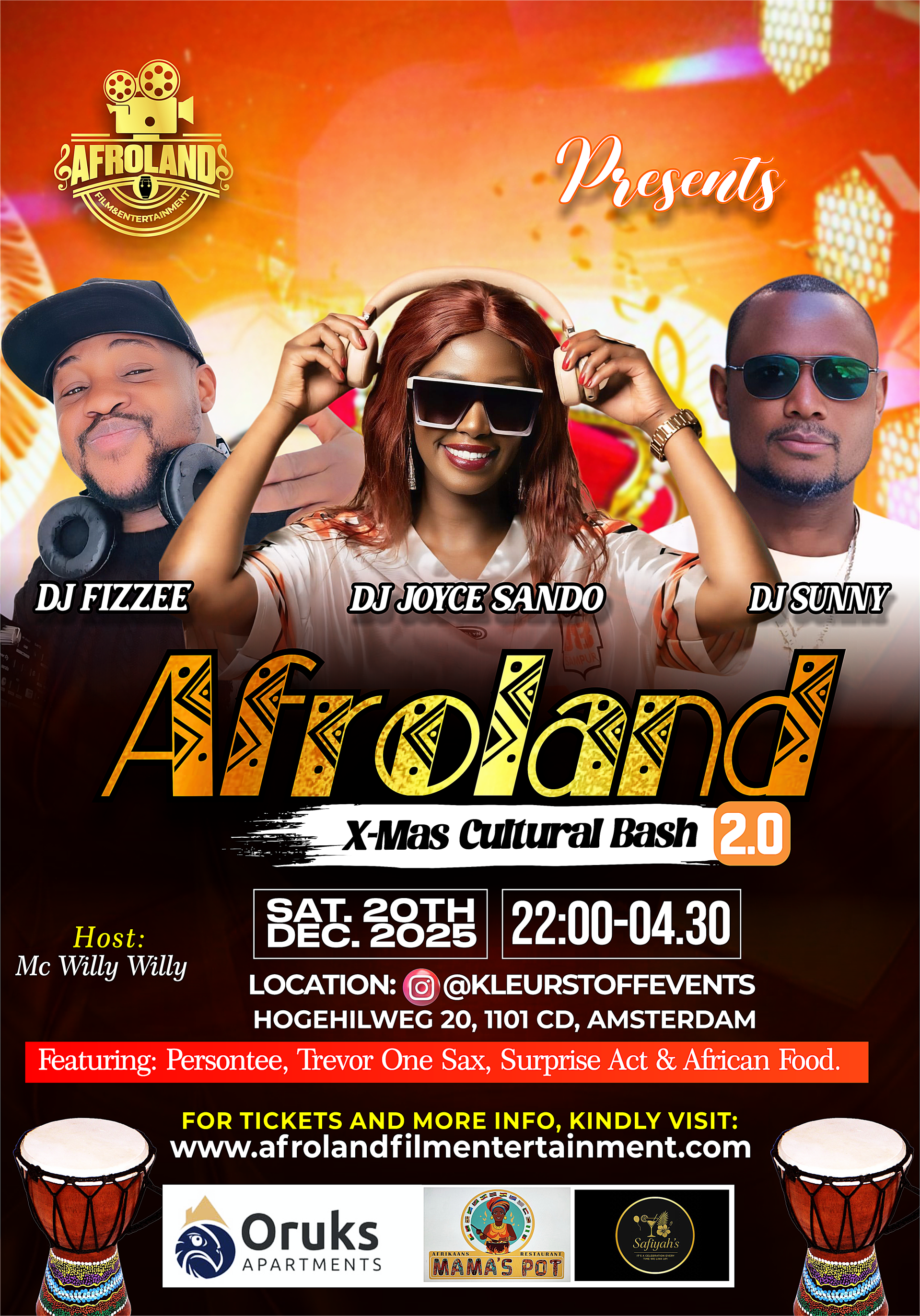 Get ready for yet another unforgettable night at the Afroland X-Mas Cultural Bash 2.0 on Saturday, December 20, 2025 - from 22:00 to 04:30 - @Kleurstoff Events (close to Amsterdam South East, Bullewijk station). This event will feature incredibly talented DJs and VJs such as: DJ Fizzee, DJ Sunny and DJ Joyce Sando - with MC Willy Willy as the host.